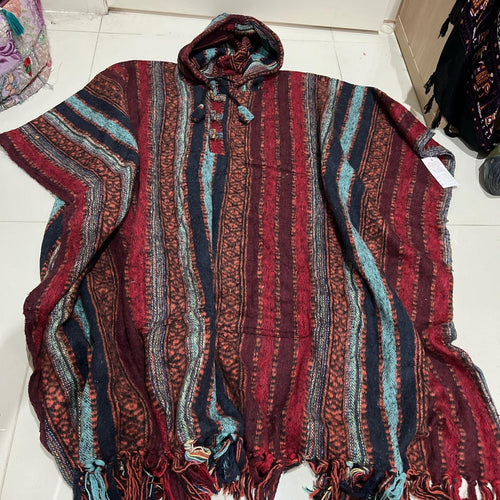Boho Poncho With Hood Boho Hippie Festival Handmade in Nepal