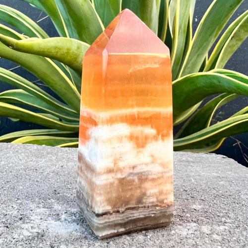 Honey Calcite Crystal Tower Point Obelisk Generator