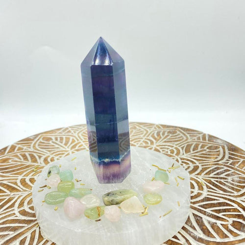 Purple / Blue Fluorite Crystal Tower Point Generator