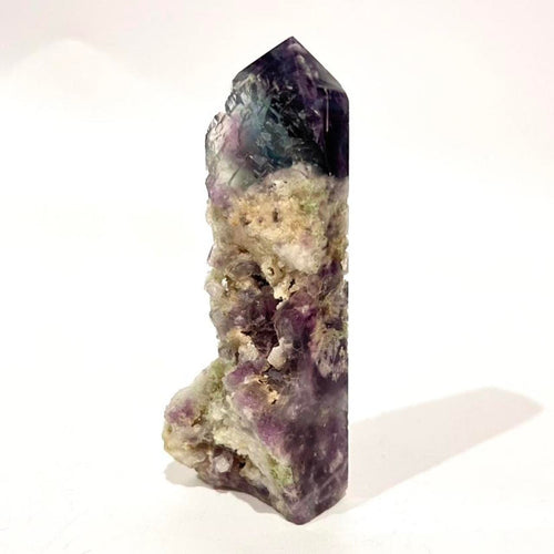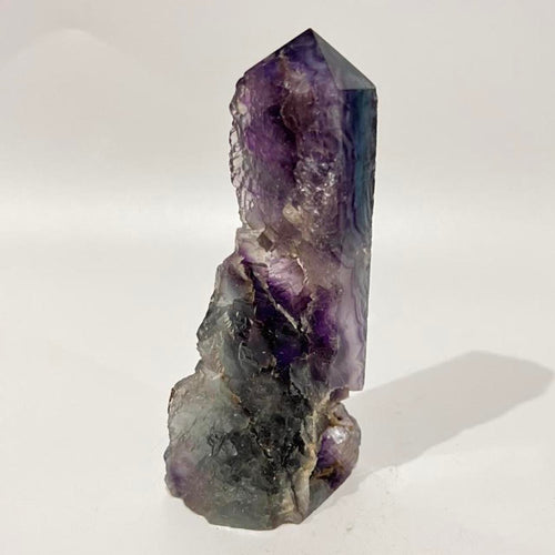Rainbow Purple Green Fluorite Half Polished Crystal Tower Point Generator