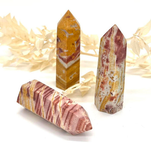 Strawberry Calcite Crystal Tower Point Obelisk Gift