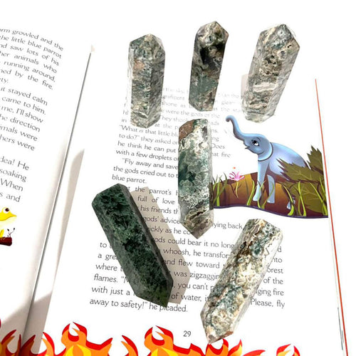Moss Agate Crystal Tower Point Generator Gift Green Crystal