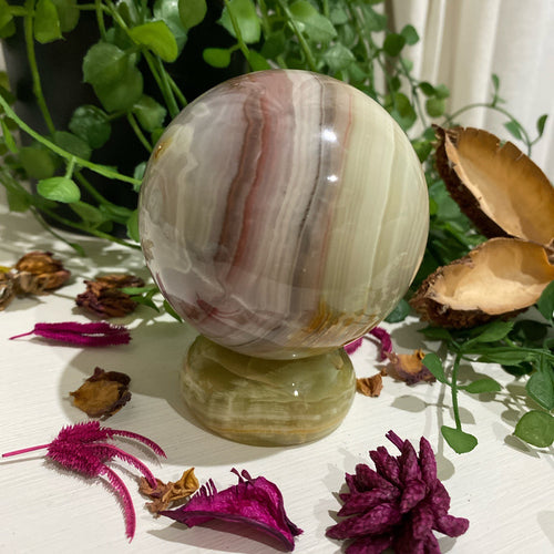 Pink Banded Onyx Crystal Sphere Crystal Ball Gift