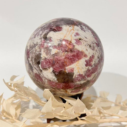 Pegmatite Crystal Sphere ~ Smokey Quartz, Lepidolite, Lithium, Pink Tourmaline Crystal Ball