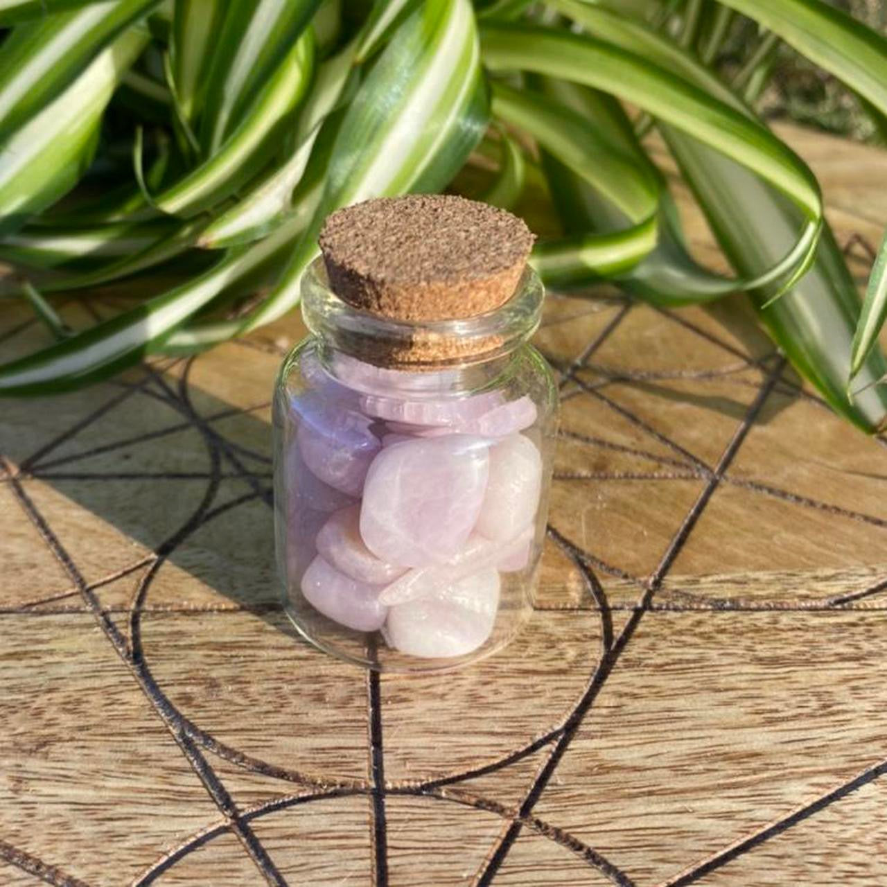 Kunzite Polished Crystal Mini Tumbled Stones in a bottle.