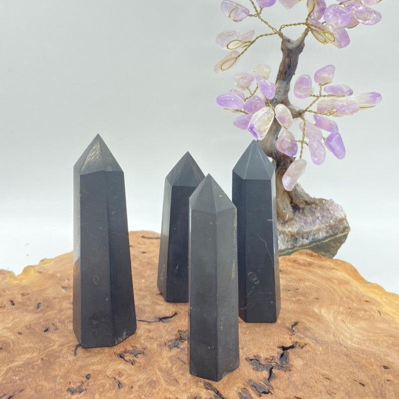 Shungite is electro-conductive, transmuting electrical energy as it passes through it. It shields you from electro magnetic frequencies.