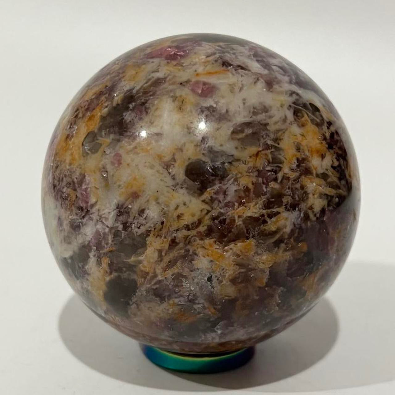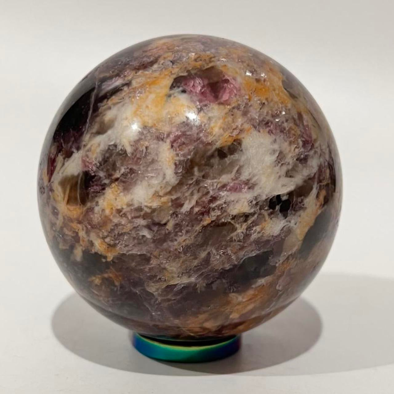 Pegmatite Crystal Sphere ~ Smokey Quartz, Lepidolite, Lithium, Pink Tourmaline Crystal Ball