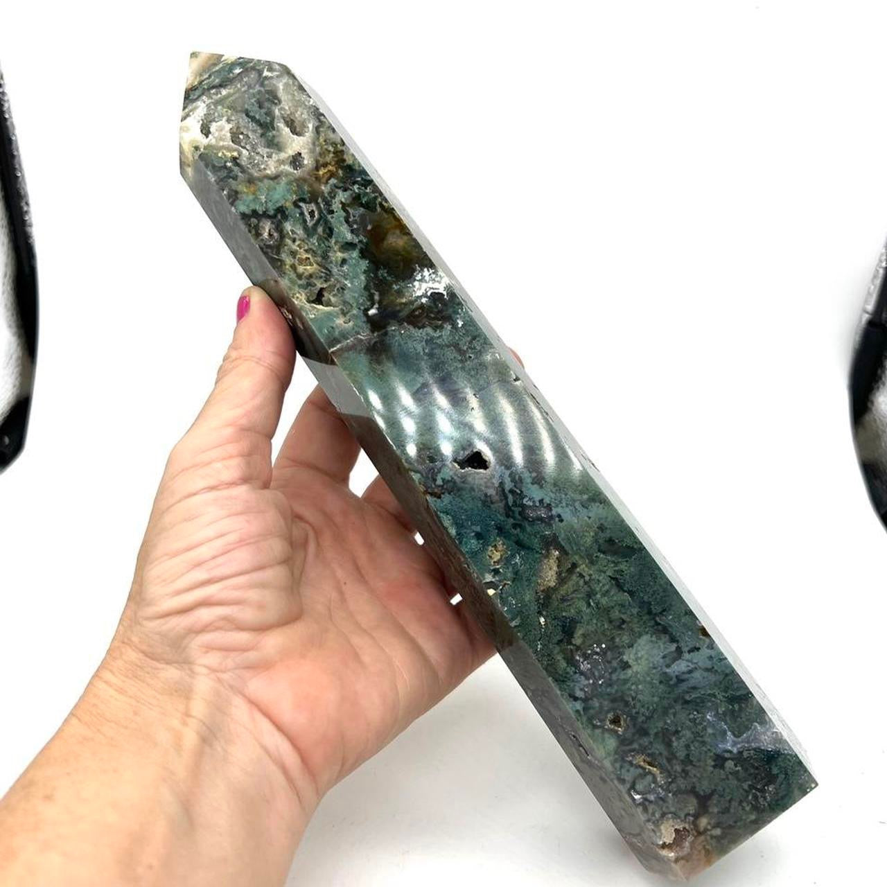 Large Moss Agate Crystal Stone Tower Point Chakra Crystals Gift