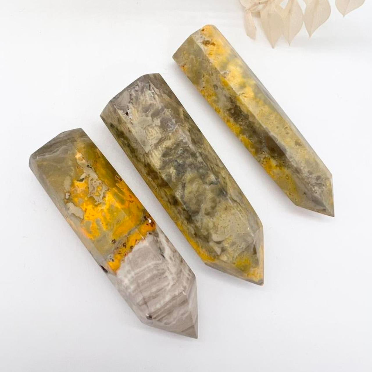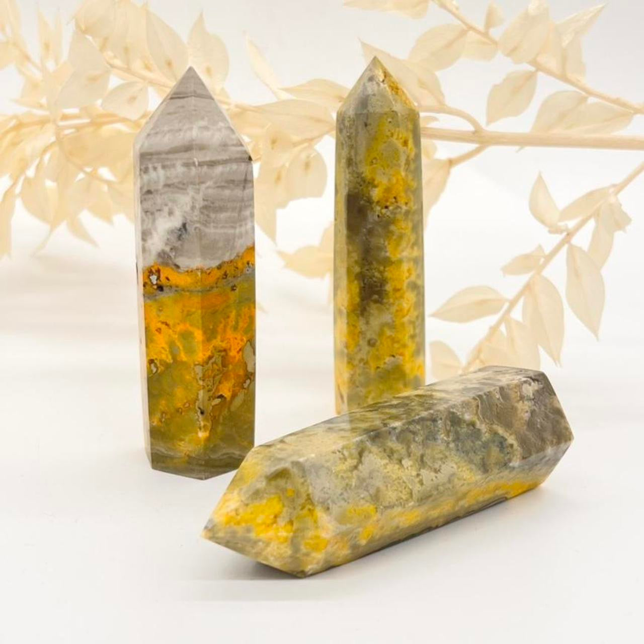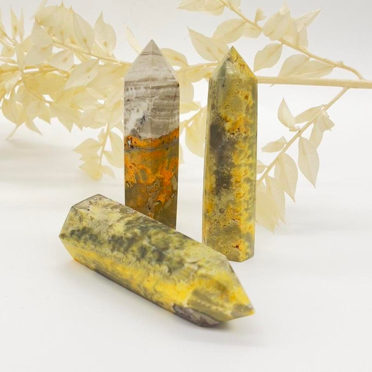 The yellow in the Bumble Bee Jasper is sulphur so it's advised to wash your hands after using this stone.