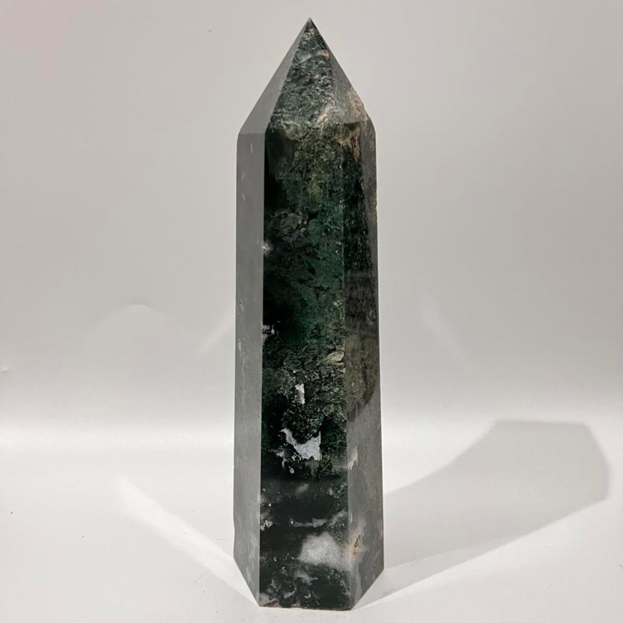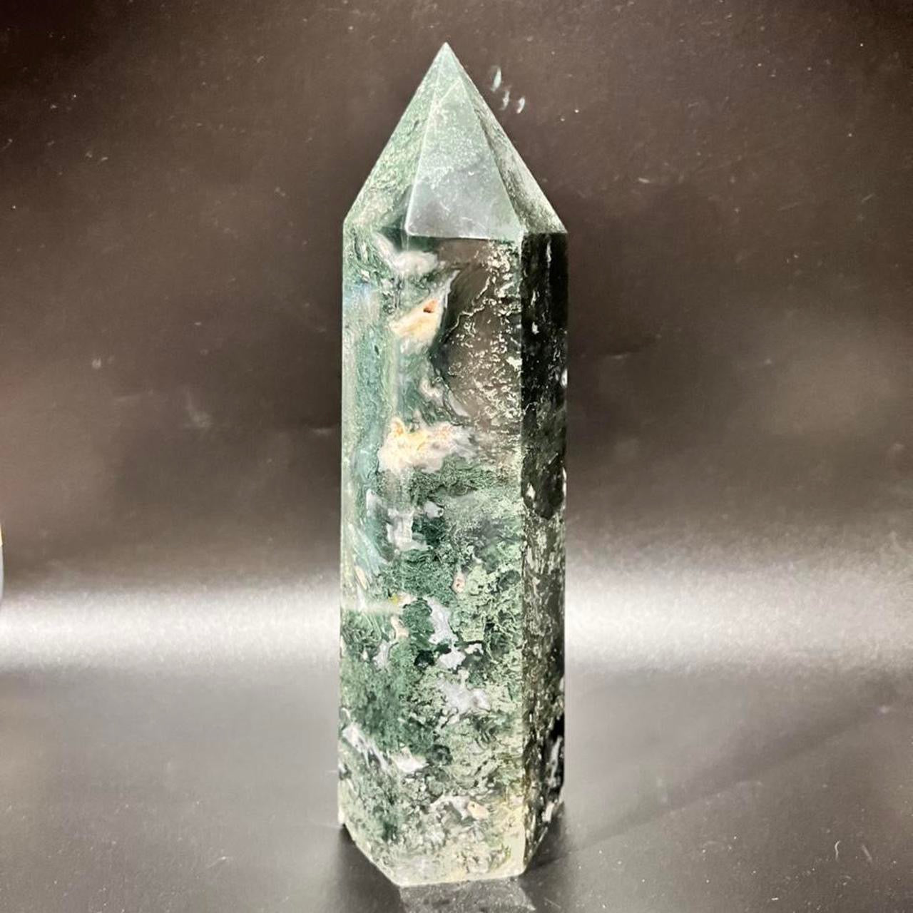 Large Moss Agate Crystal Stone Tower Point Chakra Crystals Gift