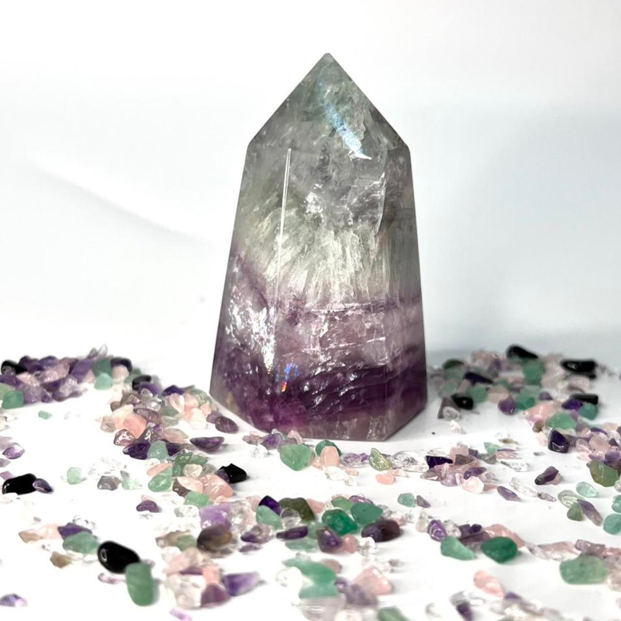 Rainbow Purple Green Fluorite Crystal Tower