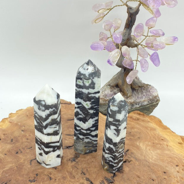 American Black and White Zebra Jasper Stone Crystal Tower