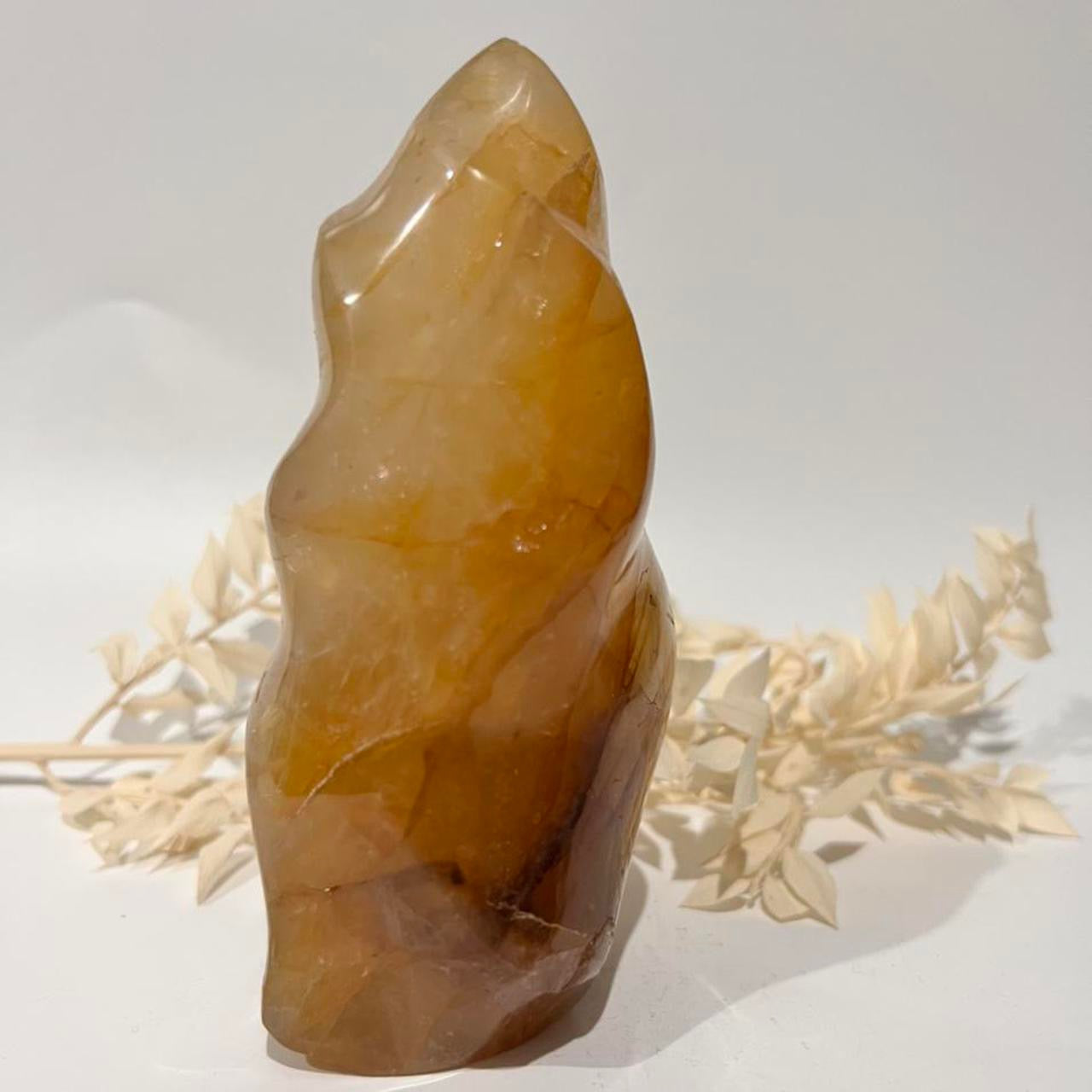 Golden Healer is a Quartz crystal infused with iron oxide, which gives it the warm yellow colouring.