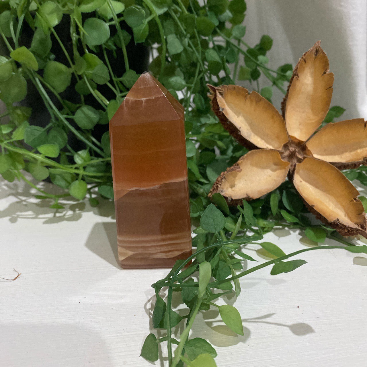 Honey Calcite Crystal Tower Point Obelisk Generator