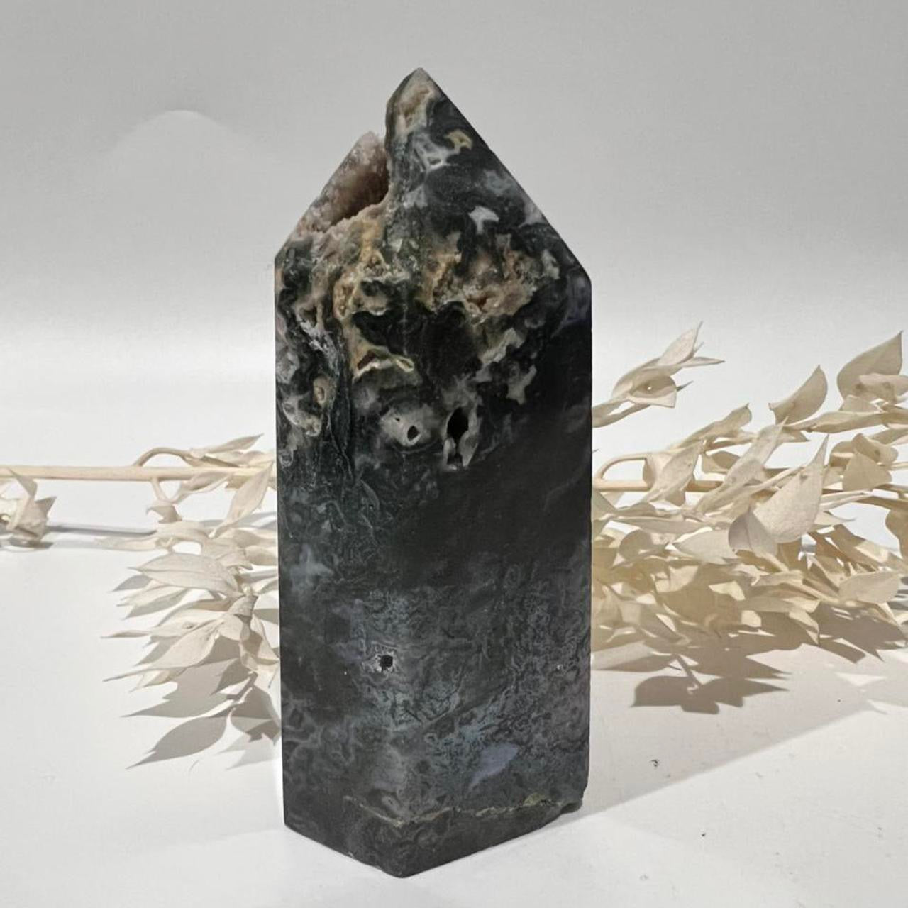 Large Moss Agate Crystal Stone Tower Point Chakra Crystals Gift