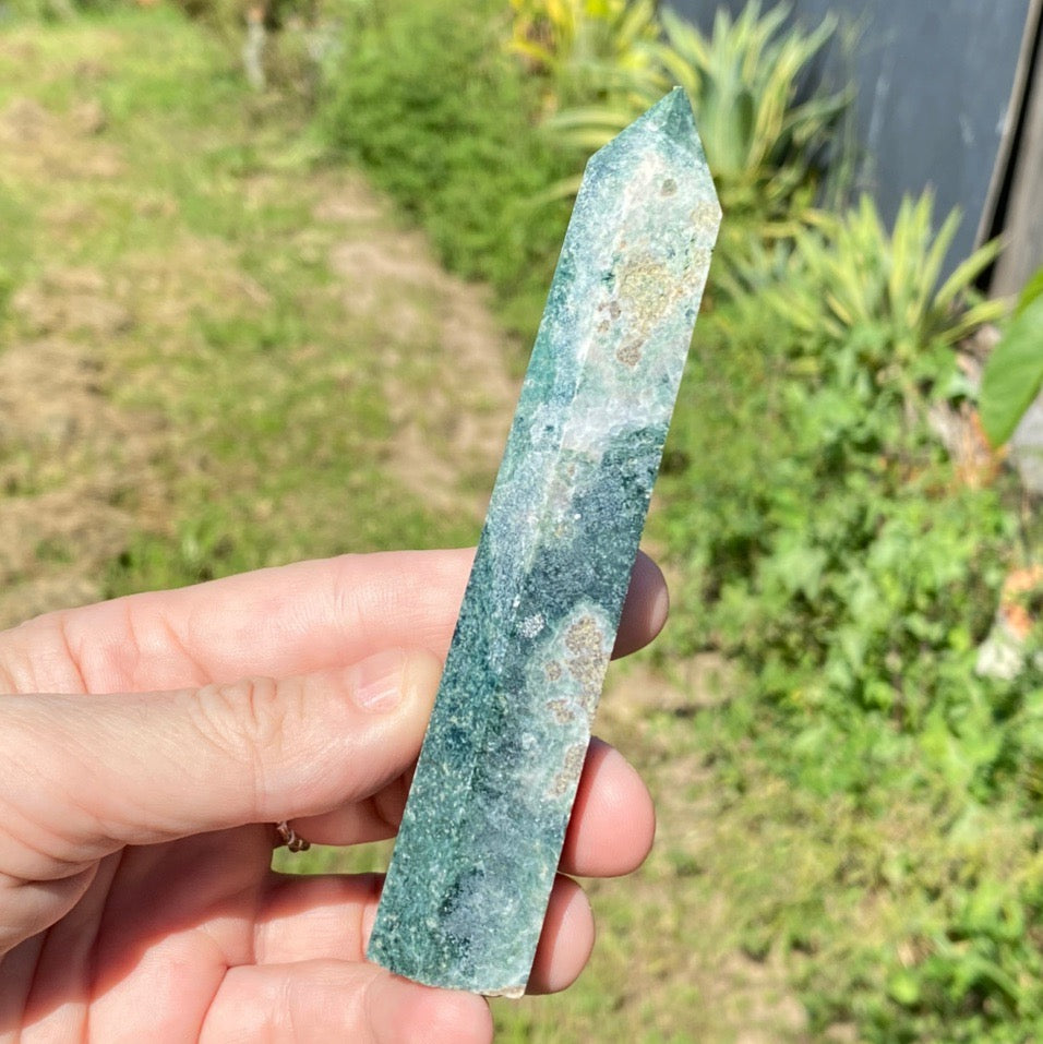 Large Moss Agate Crystal Stone Tower Point Chakra Crystals Gift