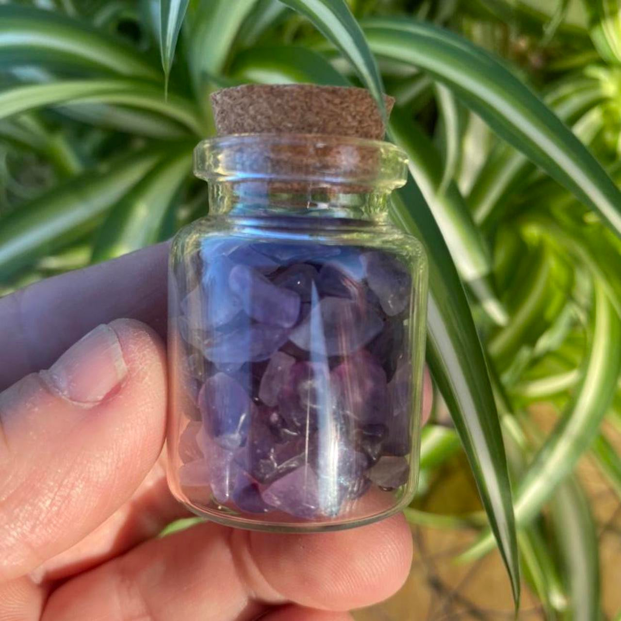 Amethyst Raw Crystal chips in a bottle.