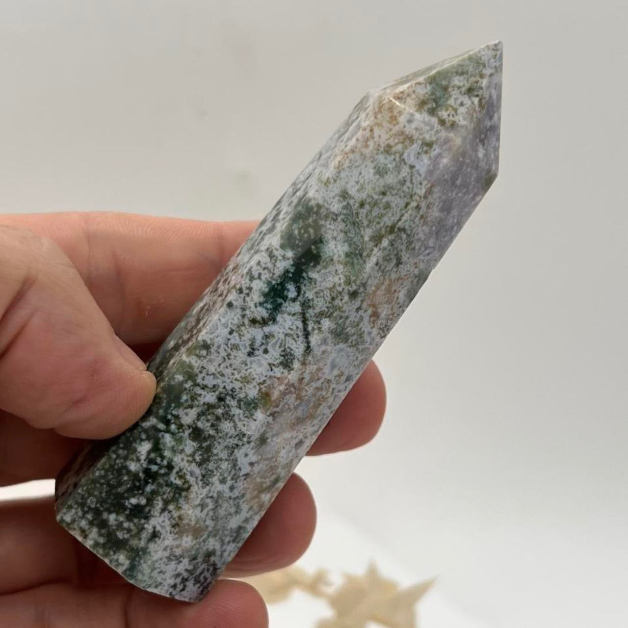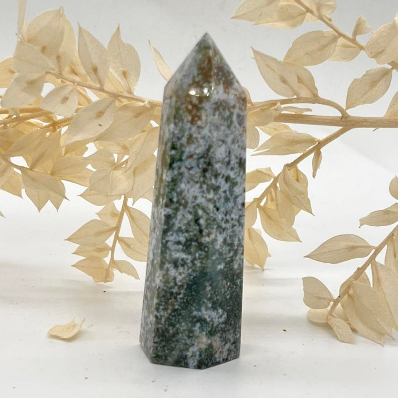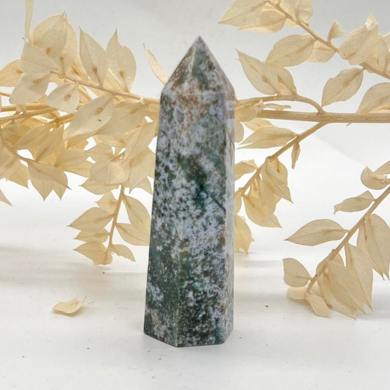 Large Moss Agate Crystal Stone Tower Point Chakra Crystals Gift